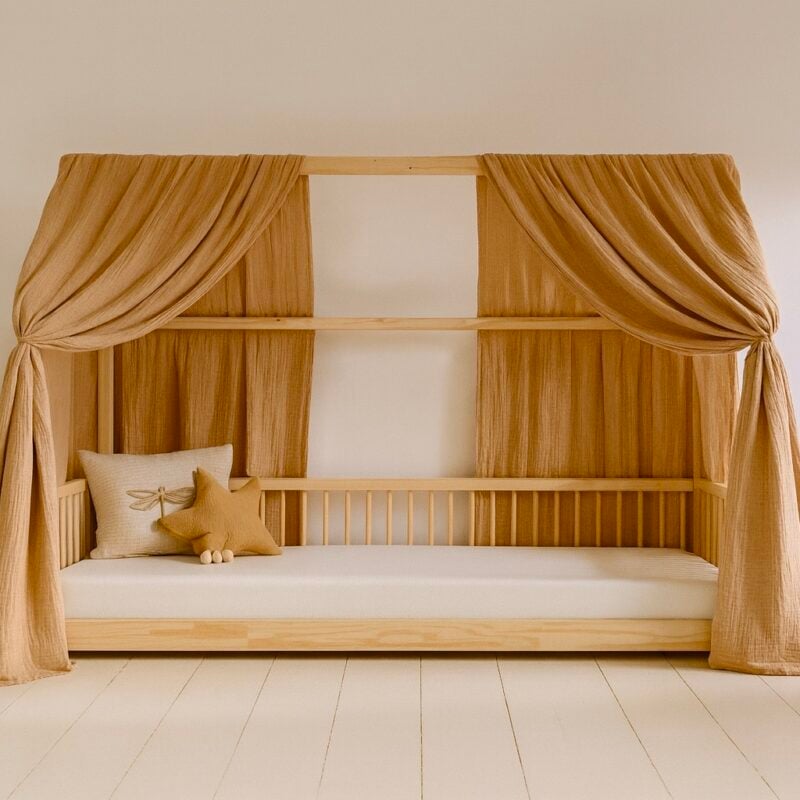 Découvrez notre ciel de lit Type A, le design polyvalent par excellence pour habiller votre lit cabane. Selon l'ouverture que vous souhaitez créer, optez pour la version simple pour un voilage élégant, ou double pour un effet « tente » encore plus marqué. Et pour les plus grands lits, notre déclinaison XL vous assure une couverture parfaite. Chaque pièce est confectionnée à la main pour s'adapter à vos envies.
