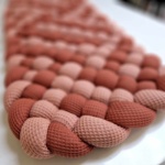 Cela dépend de l’endroit où vous souhaitez la mettre. Pour un lit bébé standard (60 x 120), une tresse de 200 cm fera un U sur la moitié du lit. Une tresse de 300 cm fera un U remplissant les 3/4 du lit. Pour le tour complet, comptez 350 cm. Pour savoir les dimensions dont vous avez besoin, mesurez le contour du lit ou du parc. Additionnez ces mesures pour connaître la taille qu’il vous faut. Un Guide des tailles les plus courantes est disponible plus haut, près des bulles de tailles.