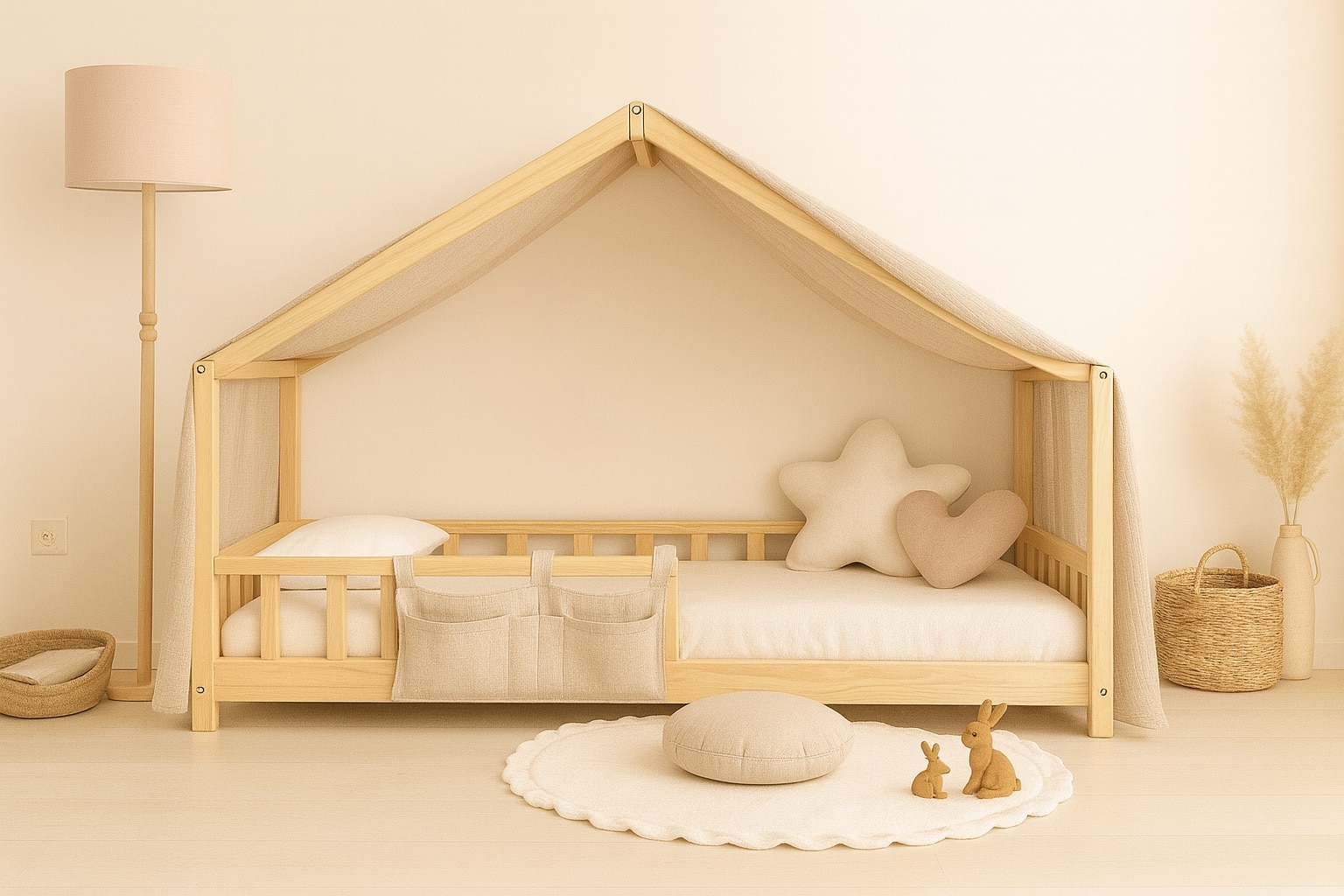 ✨ La toile de lit cabane beige est l’accessoire déco idéal pour créer une chambre d’enfant douce, rassurante et pleine de poésie.