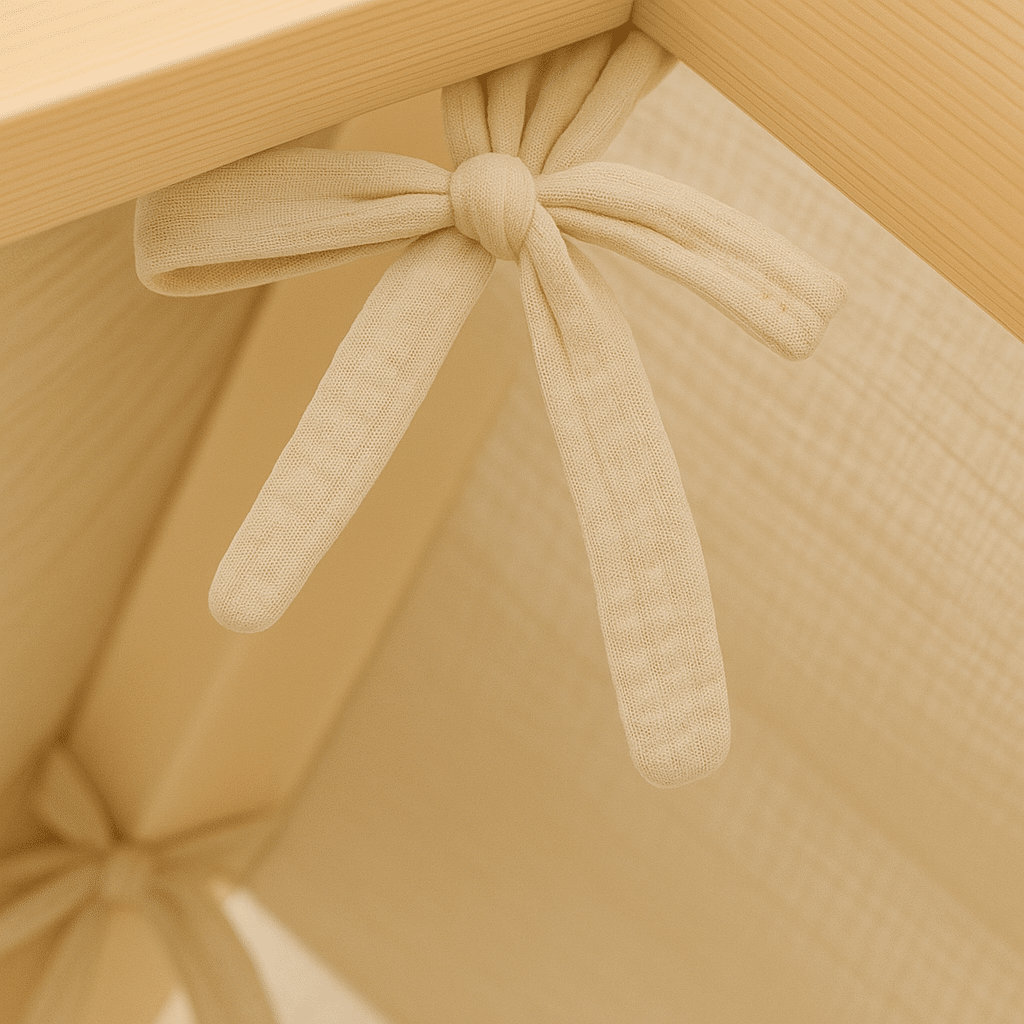 Avec ses dimensions généreuses de 410 x 140 cm, elle recouvre élégamment la structure du lit pour créer un cocon rassurant, parfait pour dormir, lire ou jouer. Fabriquée en coton double gaze certifié Oeko-Tex, cette toile est douce, respirante et sans substances nocives, idéale pour les peaux sensibles.