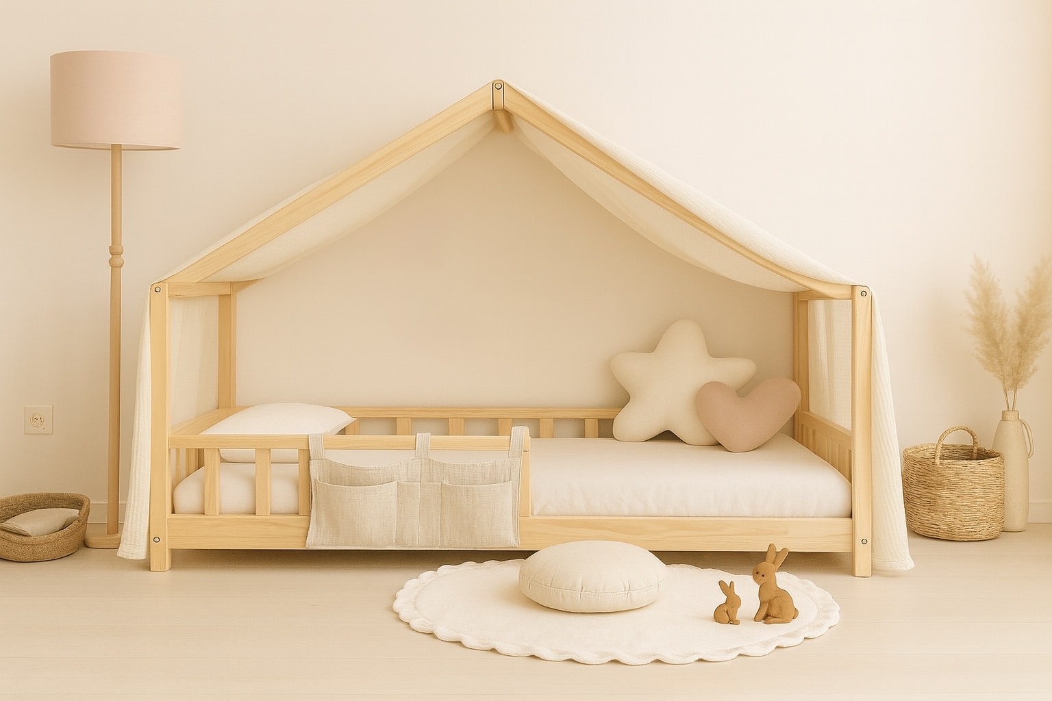 ✨ La toile de lit cabane écru est l’accessoire déco idéal pour créer une chambre d’enfant douce, rassurante et pleine de poésie.