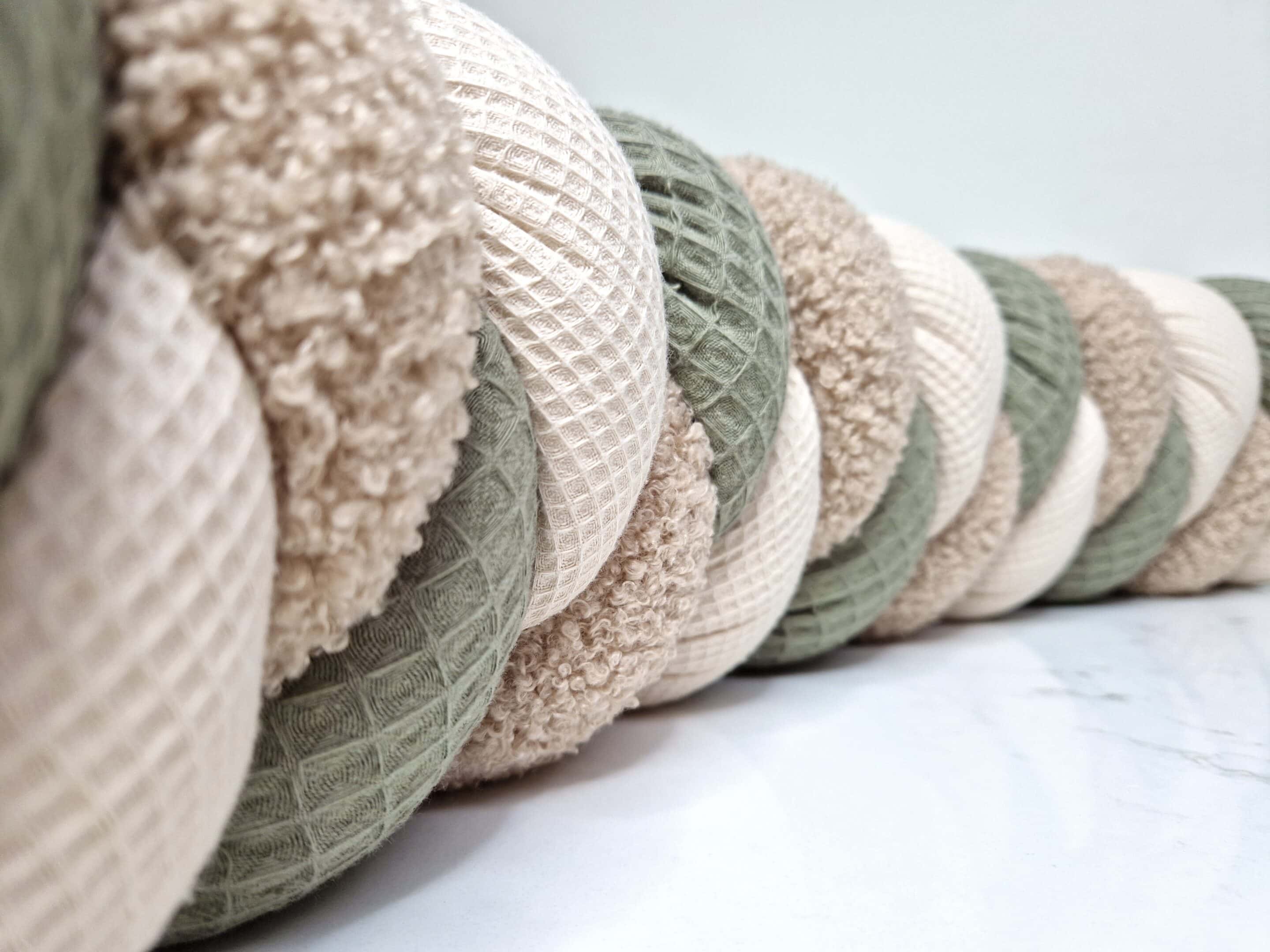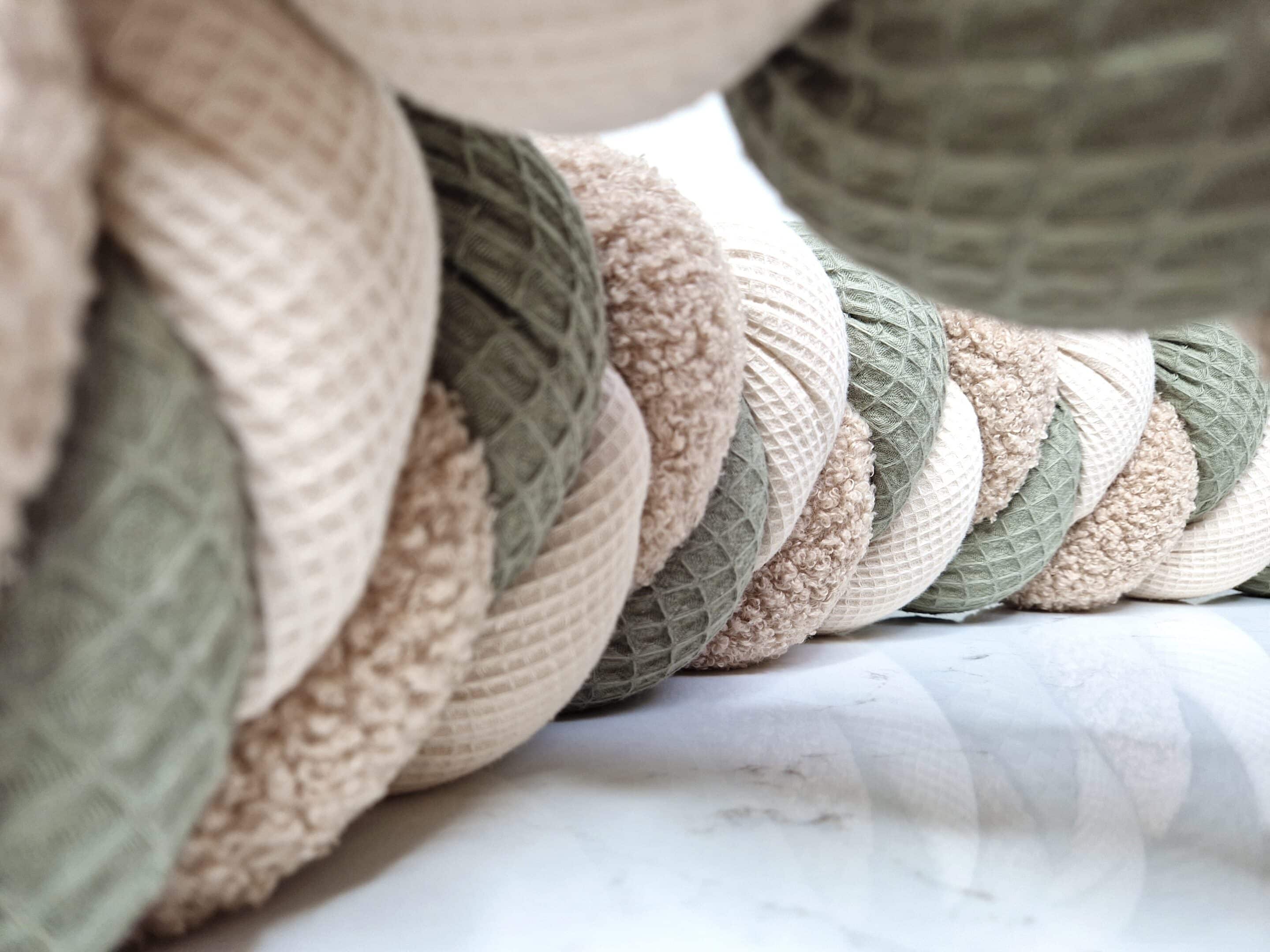 Tissus utilisés pour cette tresse : kaki | teddy ourson | mini nid d’abeille beige