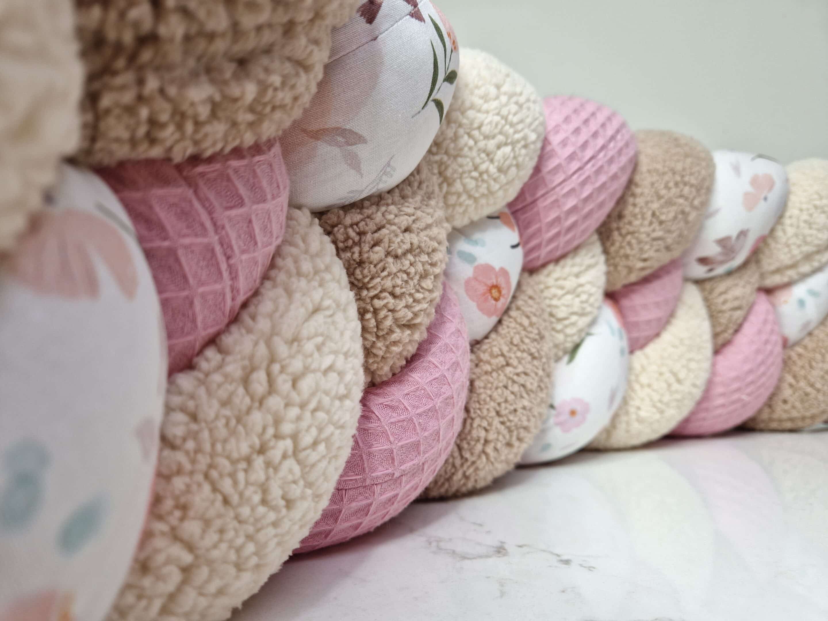 Tissus utilisés pour cette tresse : sherpa écru | sherpa ourson | rose dragée | birdy