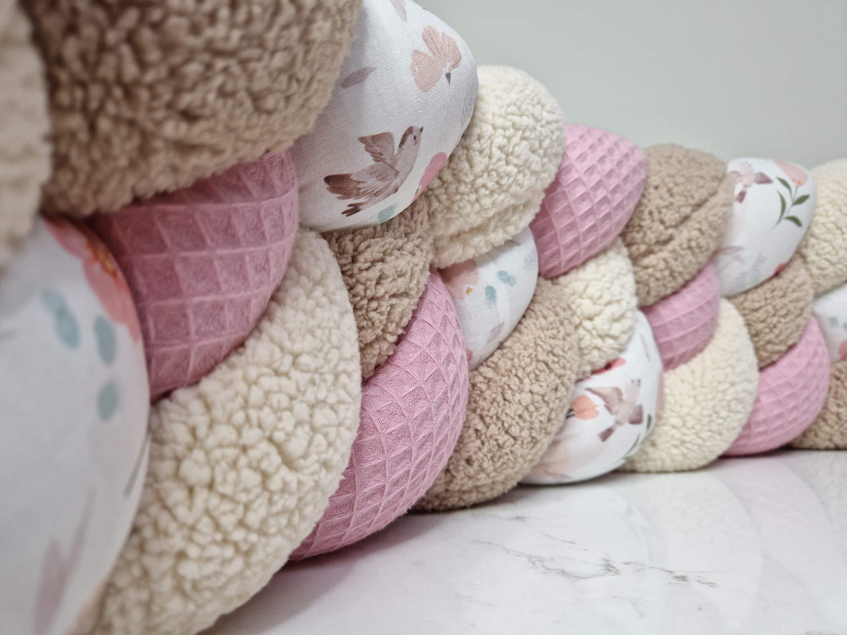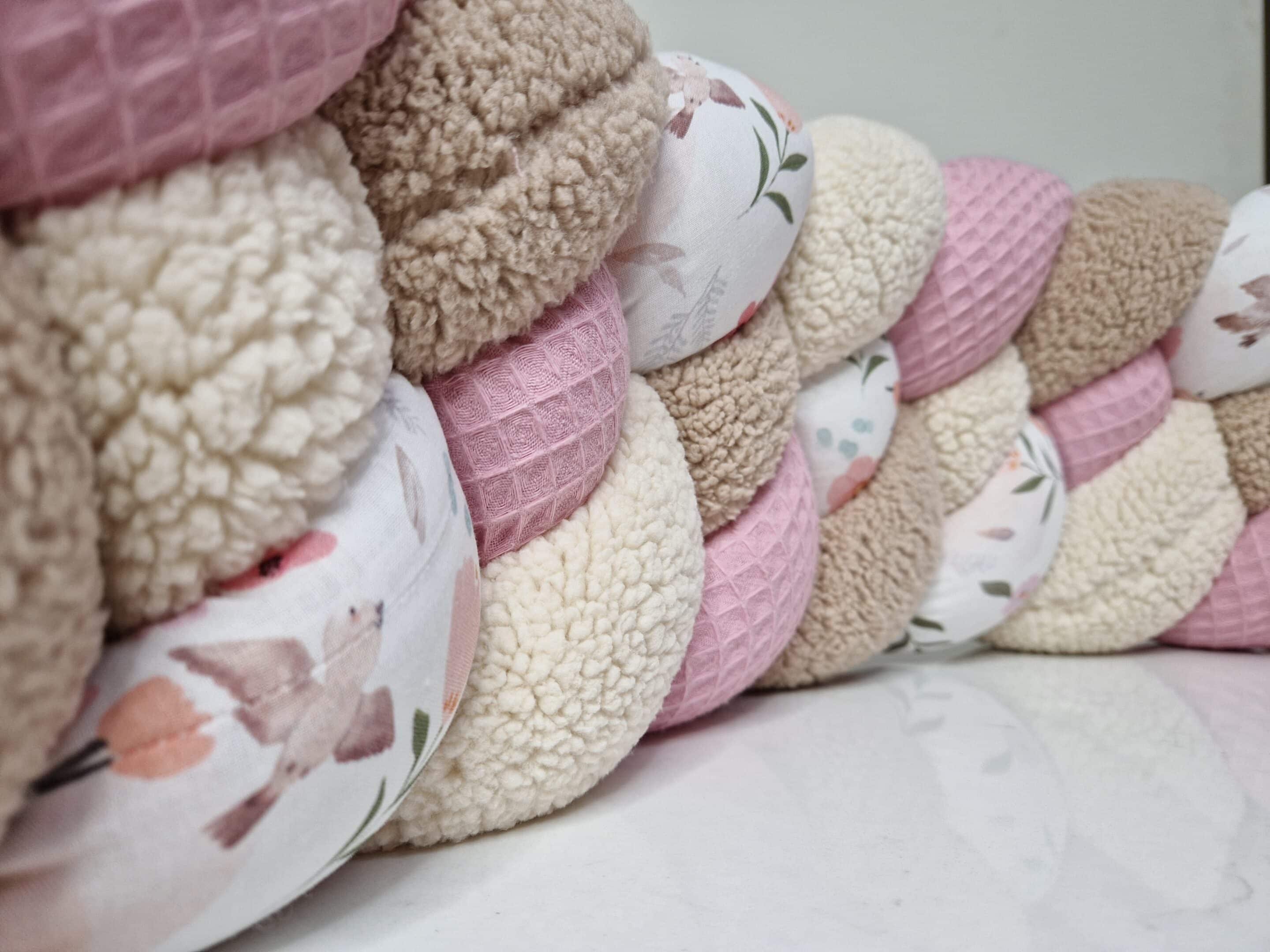 Tour de lit tressé 4 brins birdy, rose dragée et sherpa