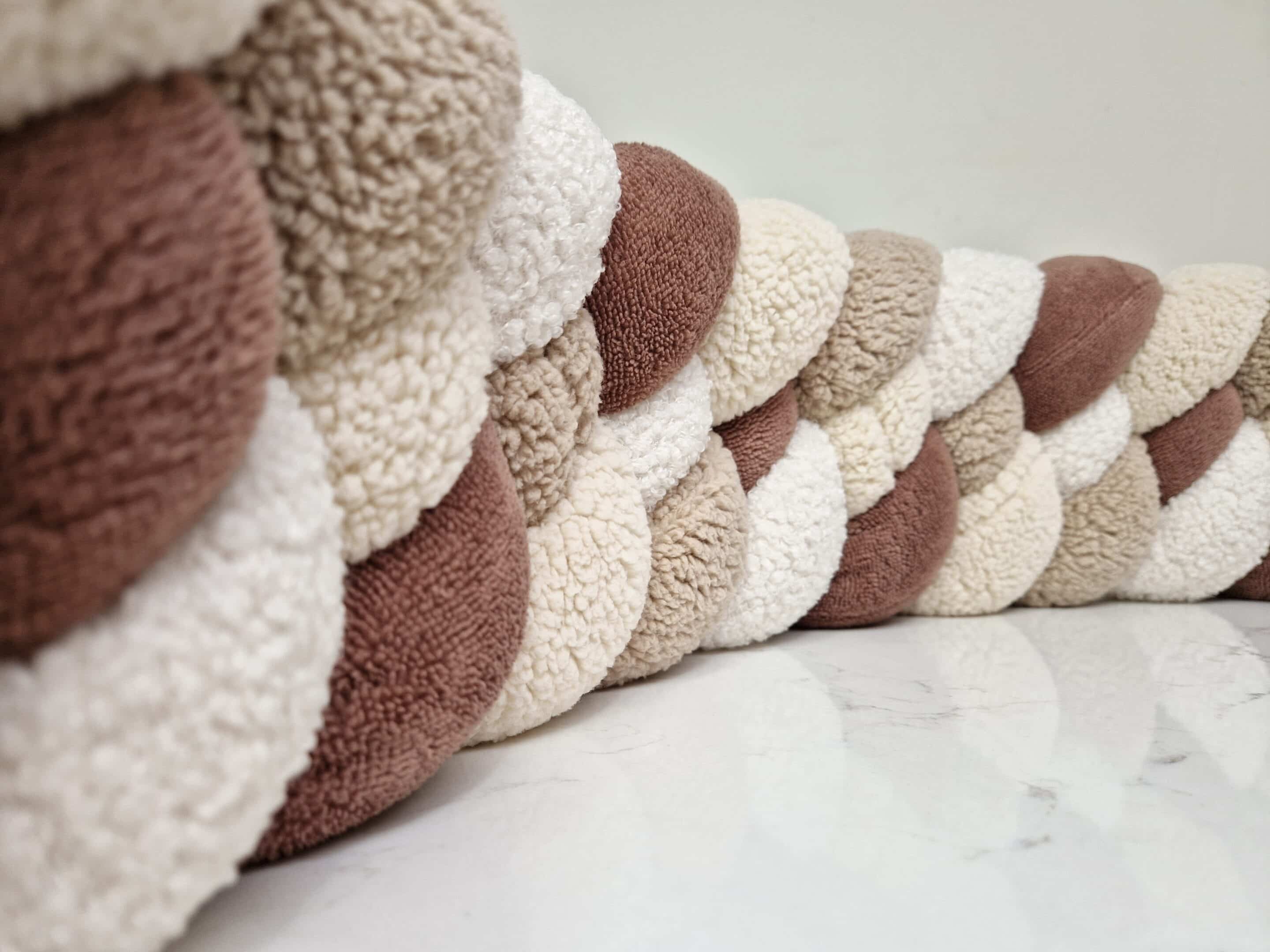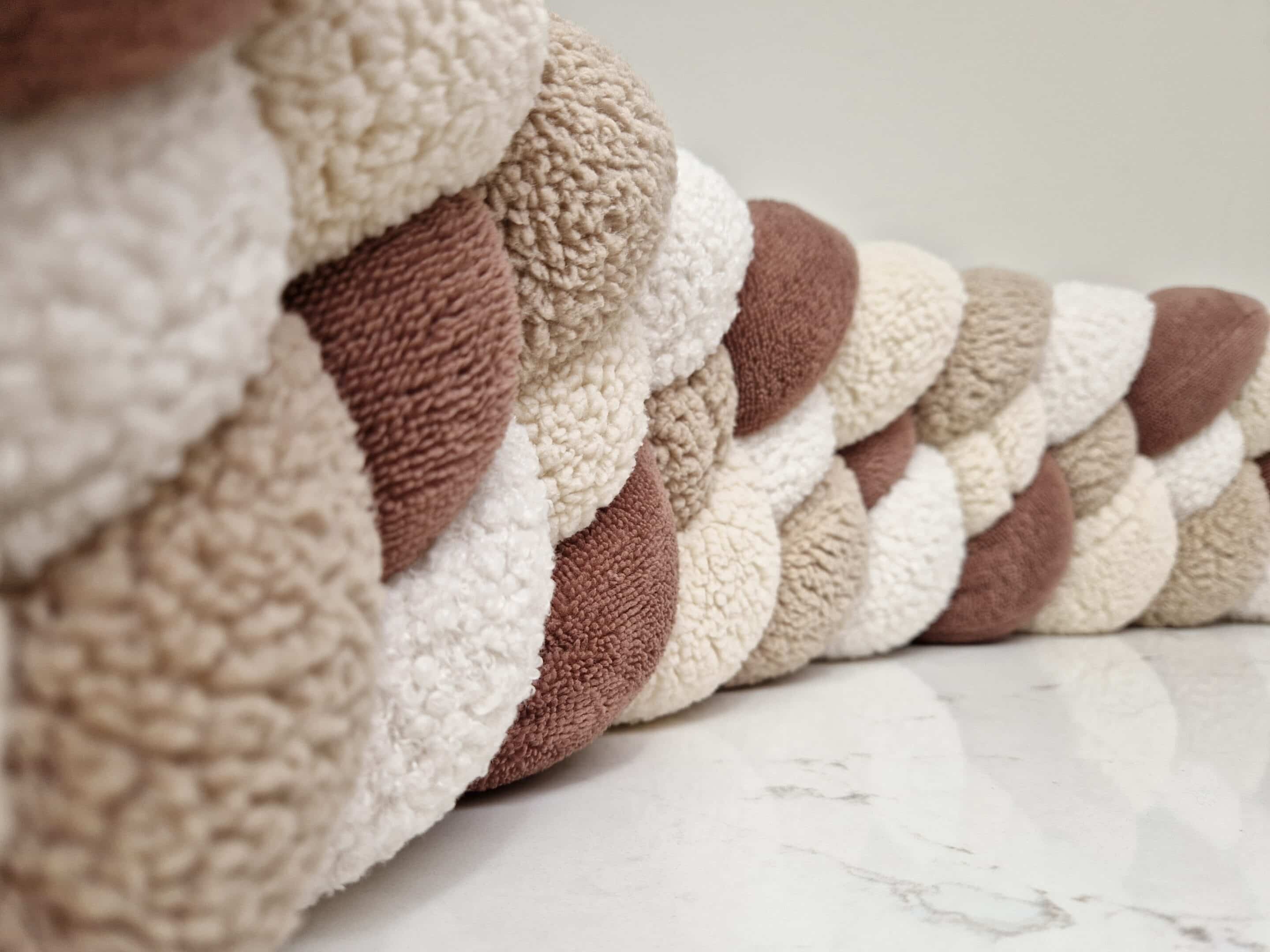 Tissus utilisés pour cette tresse : châtaigne doudou | sherpa ourson | sherpa écru | teddy écru