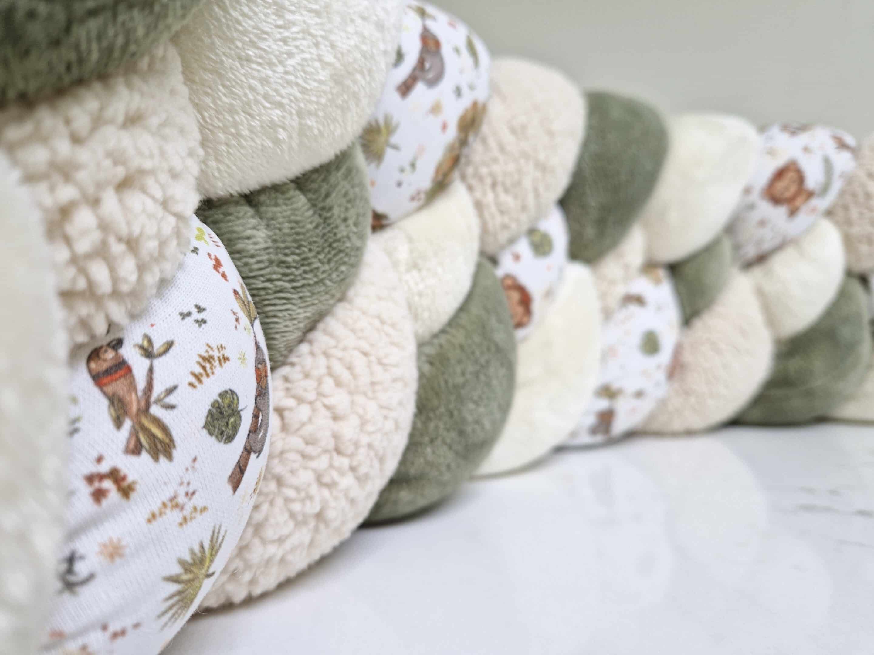 Tissus utilisés pour cette tresse : sherpa écru | doudou écru | doudou kaki | new jungle