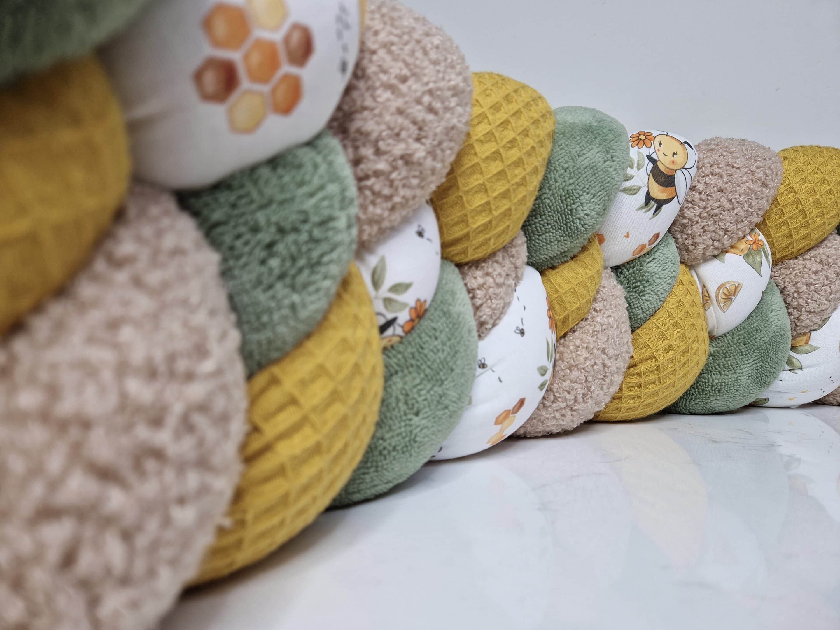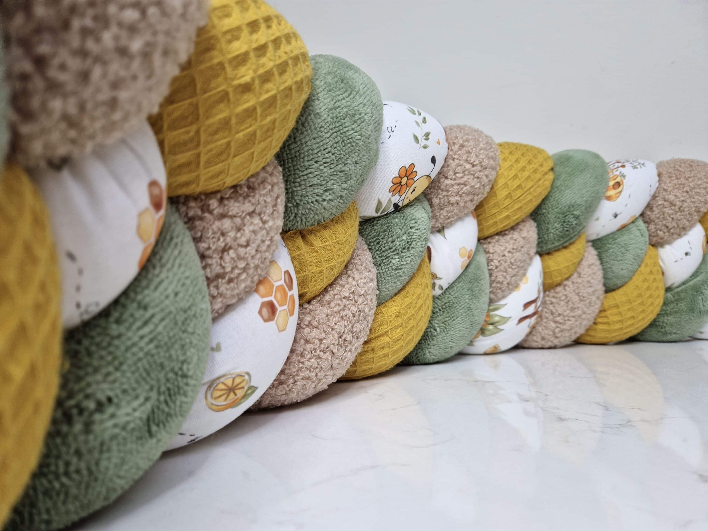 Tresse de lit 4 brins – Moutarde et miel citron – Tour de lit tressé