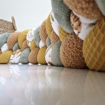 Cela dépend de l’endroit où vous souhaitez la mettre. Pour un lit bébé standard (60 x 120), une tresse de 200 cm fera un U sur la moitié du lit. Une tresse de 300 cm fera un U remplissant les 3/4 du lit. Pour le tour complet, comptez 350 cm. Pour savoir les dimensions dont vous avez besoin, mesurez le contour du lit ou du parc. Additionnez ces mesures pour connaître la taille qu’il vous faut. Un Guide des tailles les plus courantes est disponible plus haut, près des bulles de tailles.