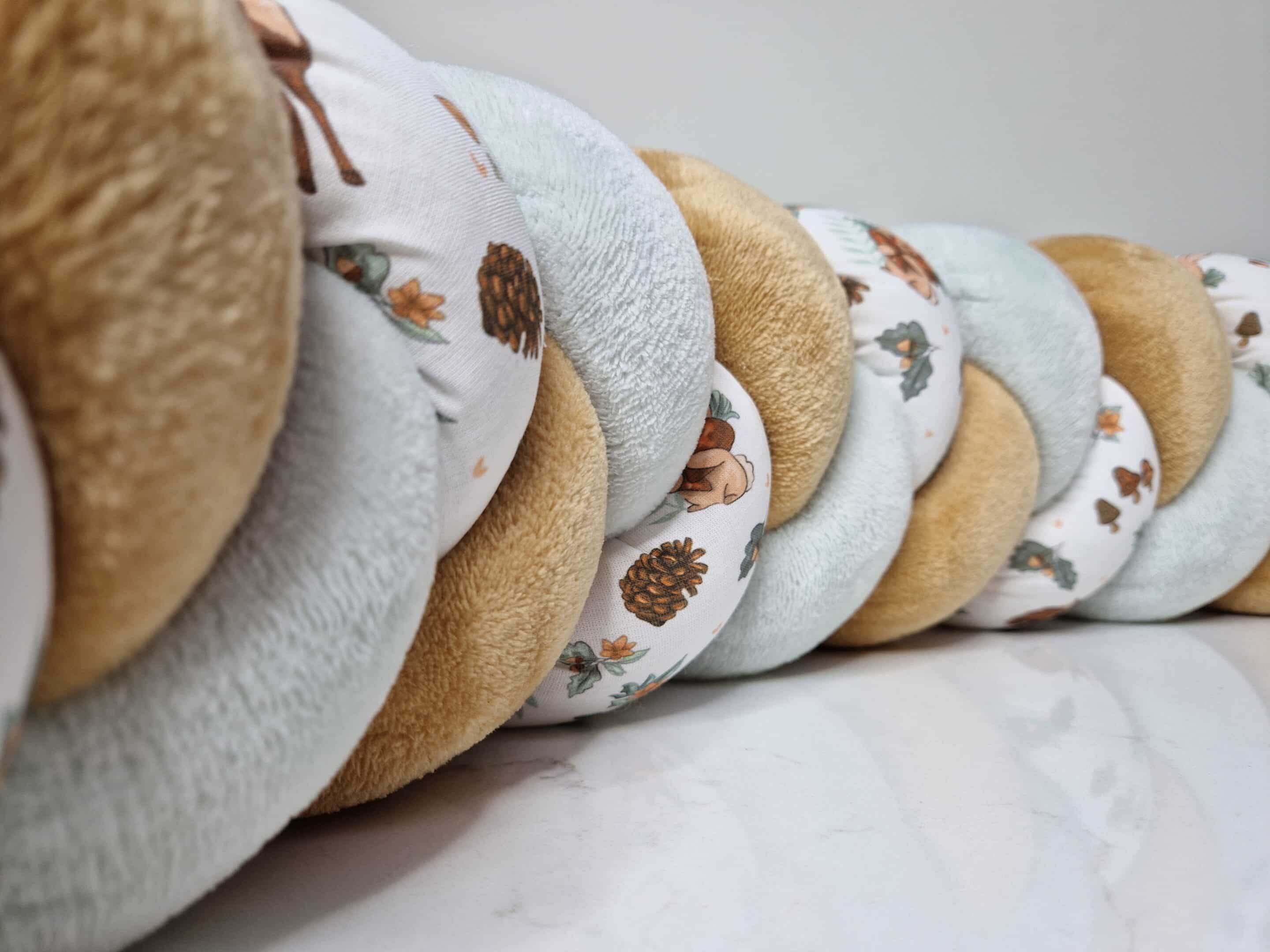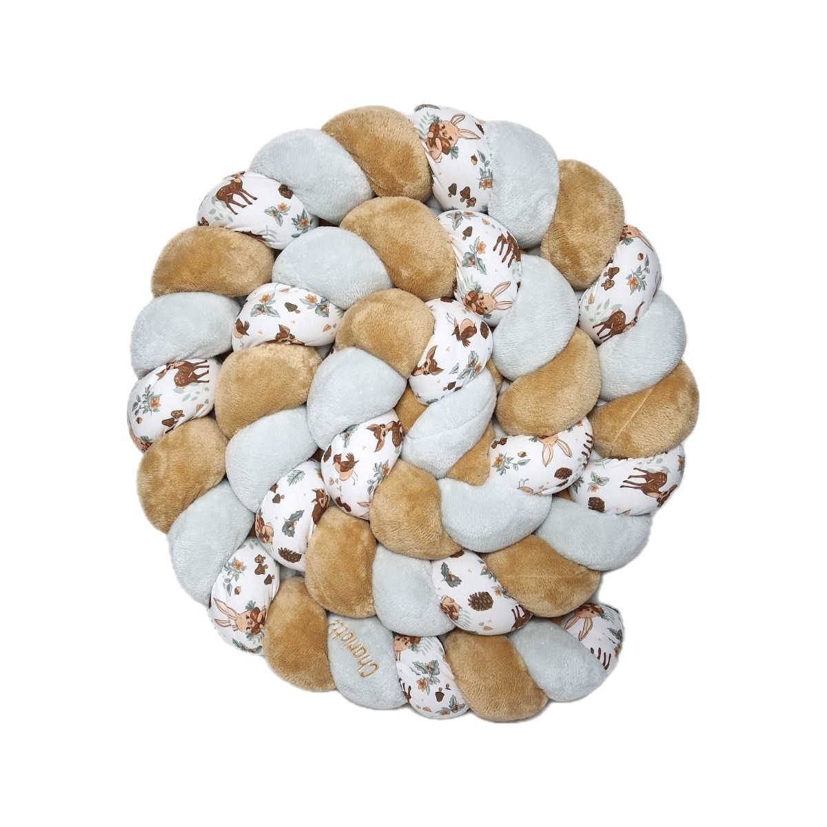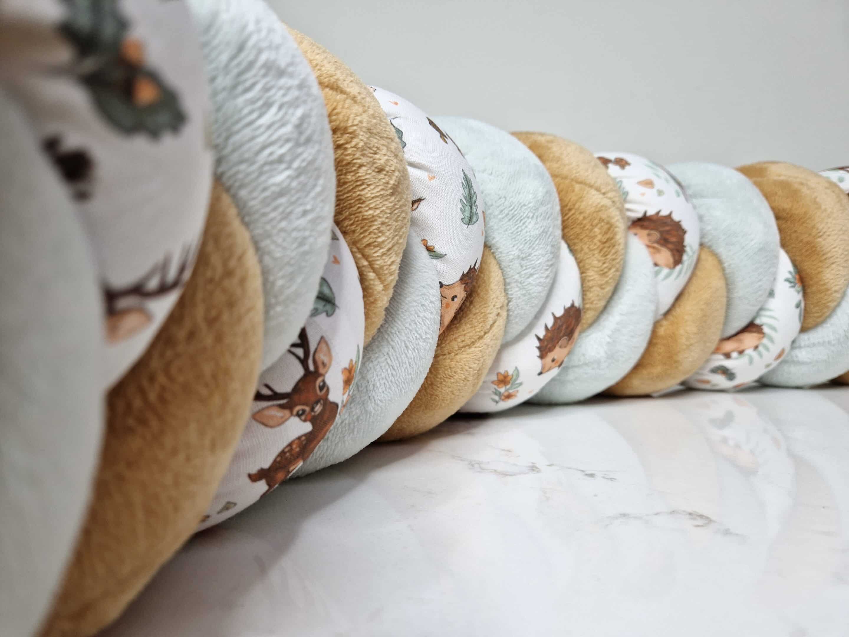Tresse de lit – Doudou camel, vert d’eau et hérisson – Tour de lit tressé