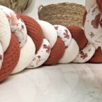 Tissus utilisés pour cette tresse : doudou écru | paprika | brebis marsala