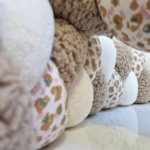 Tissus utilisés pour cette tresse : doudou écru | sherpa ourson | léopard rose-moutarde