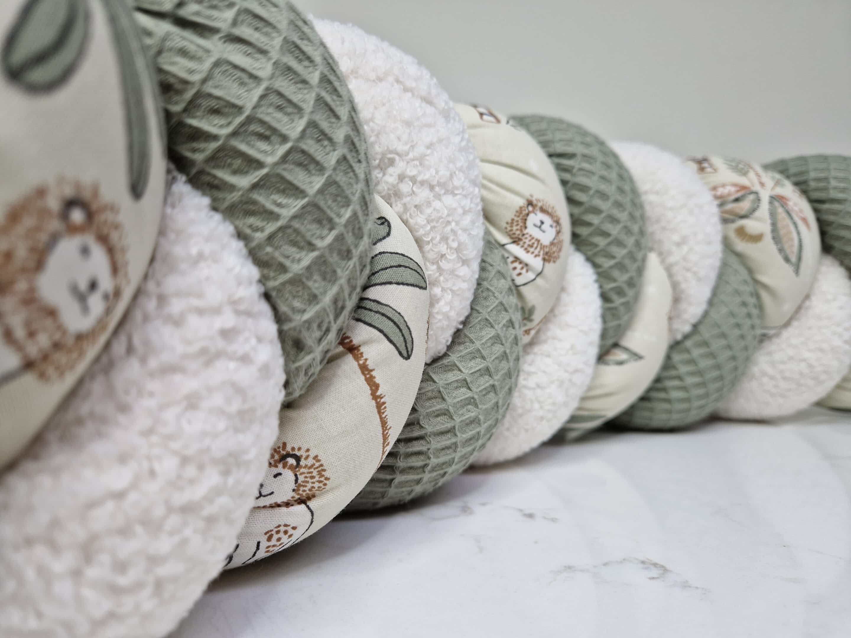 Tresse de lit pour bébé et enfant – faite main en Belgique, conçue pour sécuriser le sommeil de votre enfant tout en décorant sa chambre. Disponible en plusieurs couleurs et tailles, cette tresse est fabriquée en coton certifié Oeko-Tex avec rembourrage respirant.