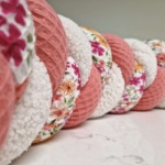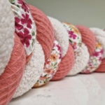 Tissus utilisés pour cette tresse : nid d’abeille corail | teddy écru | nid d’abeille fleuri
