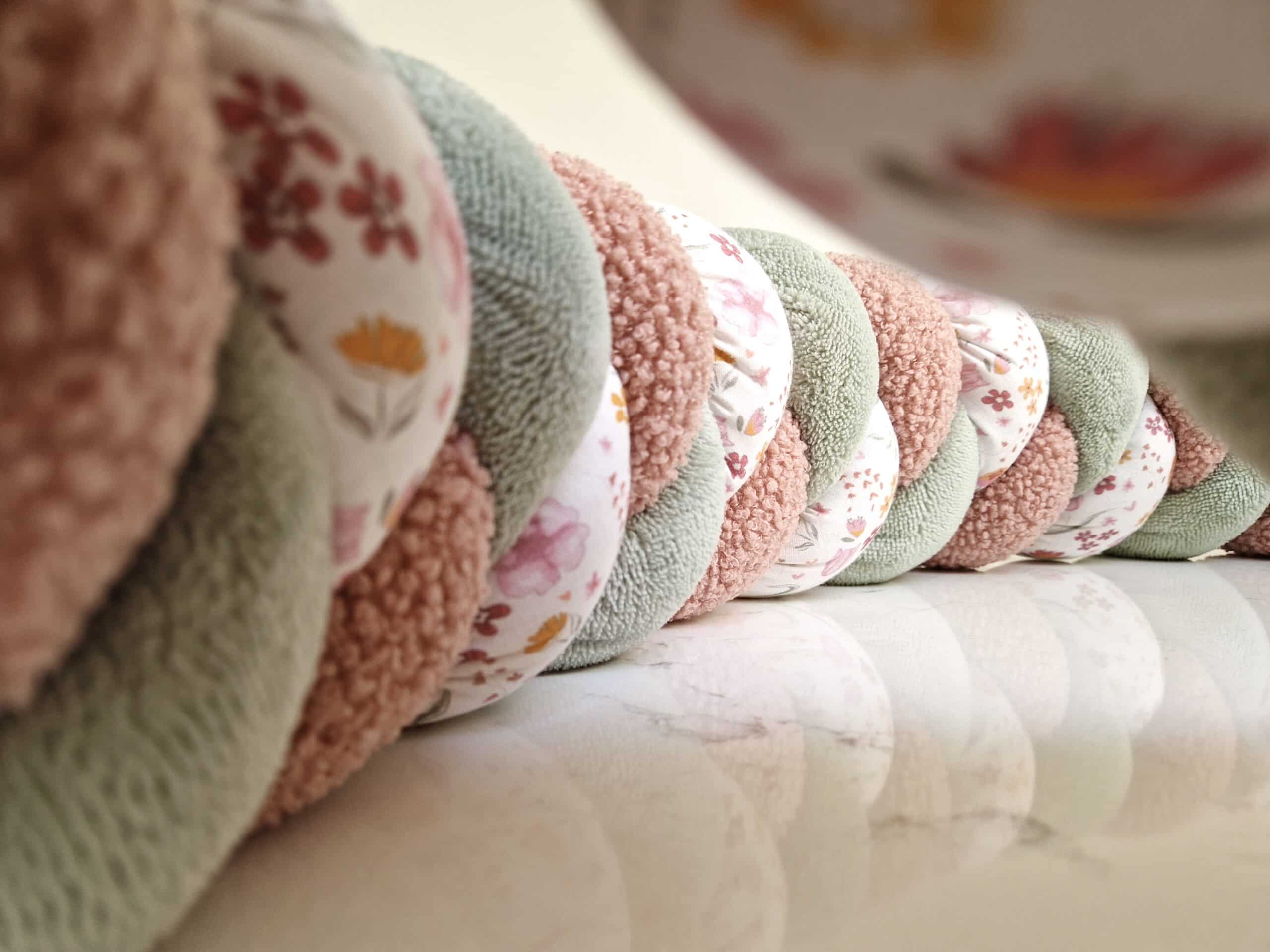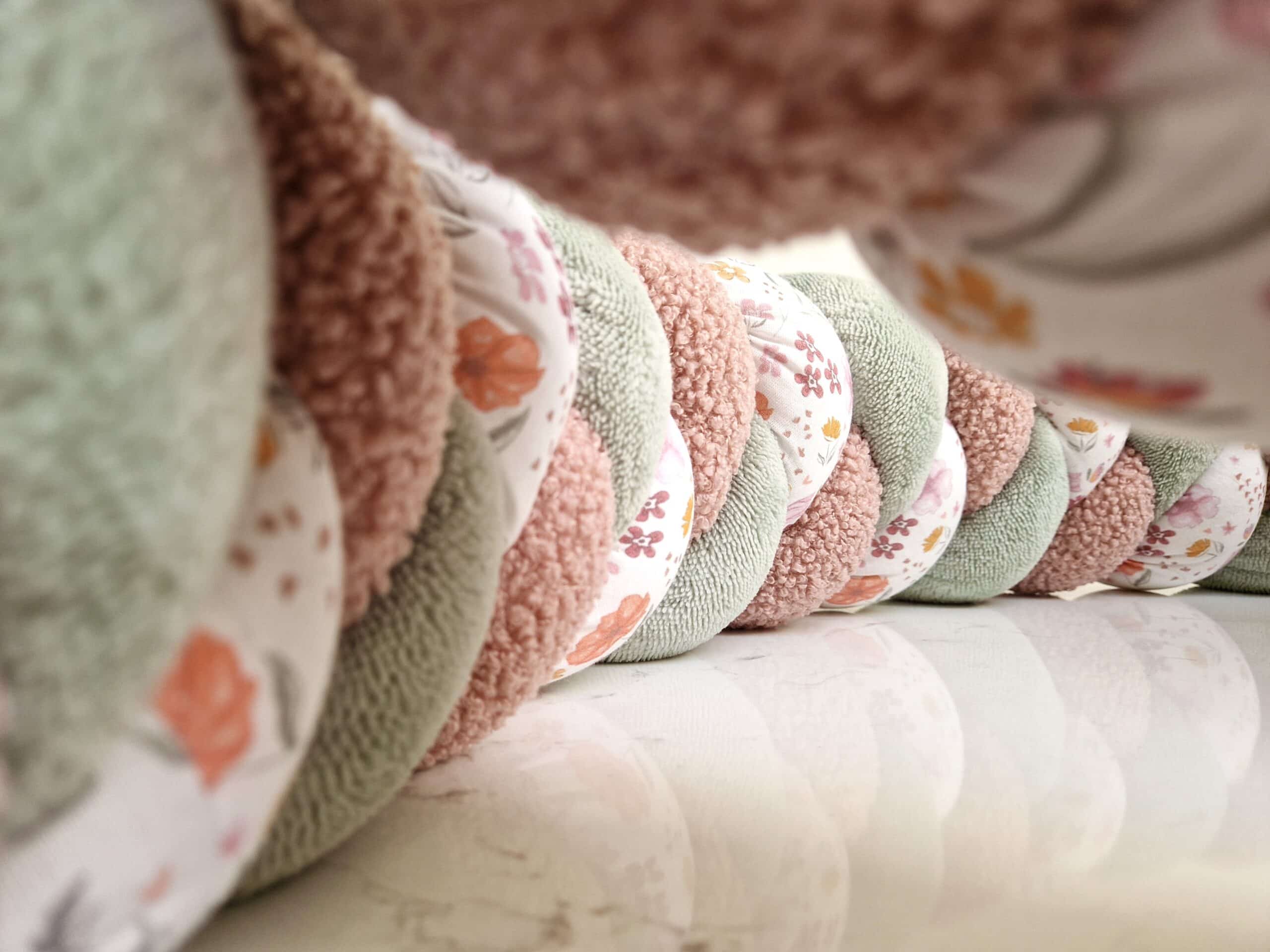 Tissus utilisés pour cette tresse de lit : teddy rose | vert de gris doudou | new mille fleurs